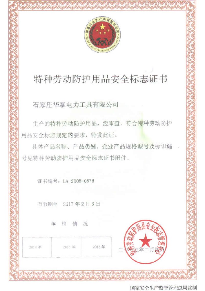 特種勞動(dòng)防護(hù)用品安全標(biāo)志證書