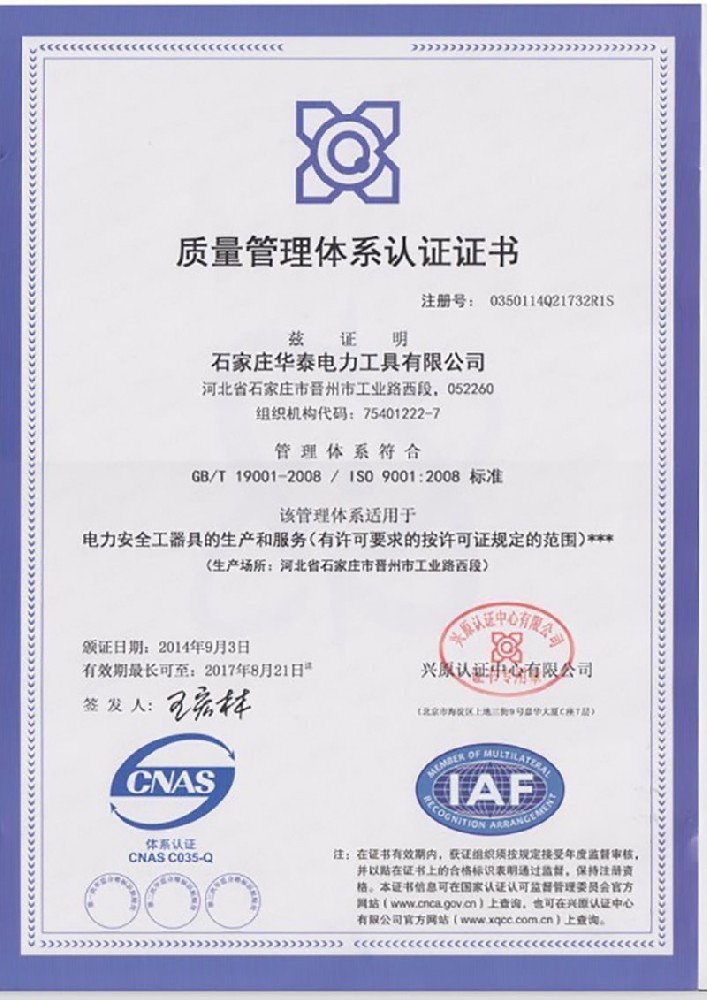 石家莊華泰電力工具有限公司(原晉州市電力工具有限公司)成立于2003年,是集設(shè)計(jì)、生產(chǎn)、研發(fā)、銷售、服務(wù)為一體的電力安全工器具高新技術(shù)企業(yè)、專精特新中小企業(yè)、河北工業(yè)企業(yè)研發(fā)機(jī)構(gòu)A級(jí)企業(yè)。